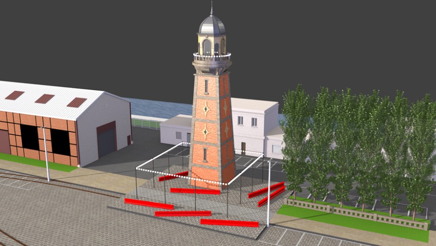 L'artiste Pierre Ardouvin propose de rénover le clocher de la tour des Dockers en le recouvrant d’une toiture scintillante, qui sera vivement illuminée la nuit. De jour comme de nuit la tour apparaîtra au loin comme un phare, un signal. Au pied de la tour, l'aménagement d'une place pavée dégagera un large espace carré. Sur les pavés seront disposées de très grosses poutres métalliques laquées d’un rouge vif, couleur des luttes ouvrières. Leurs masses de métal coloré renverront aussi aux éléments environnants du port : les grues, les cavaliers et les énormes portiques. Ces poutres feront office de bancs, des parties d'assise en bois massif y seront fixées. Une grande guirlande d’ampoules entourera la tour et éclairera la place. Par cet éclairage particulier, l'artiste a souhaité évoquer l'idée d'une place de quartier et d'un moment de fête, idée qui entre en en écho la forte identité populaire du quartier de l'Eure. La modification des accès véhicules et des zones de stationnement, l’arrachage de certains arbres et la plantation de nouveaux en remplacement dégagera l’espace autour de la place et le rendra plus agréable et ouvert. Du même coup les corps de bâtiment en arrière-fond de la place n’en seront que plus visibles.